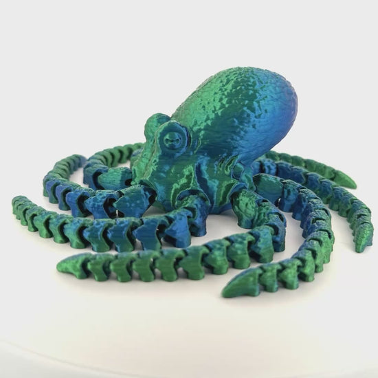 Note: This octopus is printed with a dual color filament which randomizes the Blue and Green color locations on it making each print's color placement unique.